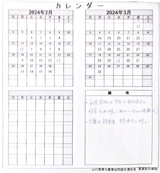 - 2024-01-22:検査結果を聞きに家族と周東総合病院へ