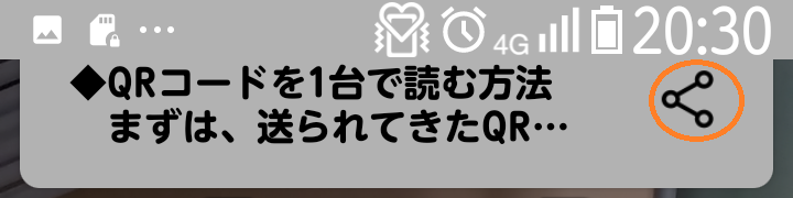 今回は「Lineで送られてきたQRコードをLineで読み取る」方法。スクリーンショットを撮るので、メールで送られてきても同じことになる。