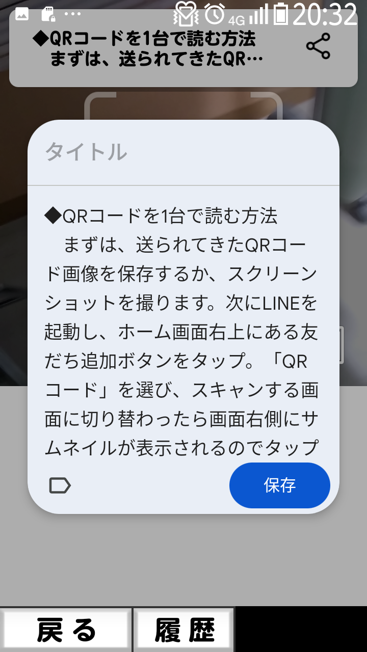が表示されるので、読みたいQRコードの画像をタップする。 - 上部にQRコードを読み取った一部