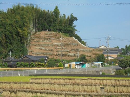 次は、石八前広場の竹で炭を焼こう。 その前に、枝を捨てる場所を確保せねば‥‥ 昨年9月下旬、はぜ掛けを見に行った時に撮影。 イメージにあるのは、右の写真。これを真似よう、大波野の山中で1機目? を作った。2機目を石八前広場に作ろうと... 適地は直ぐ…