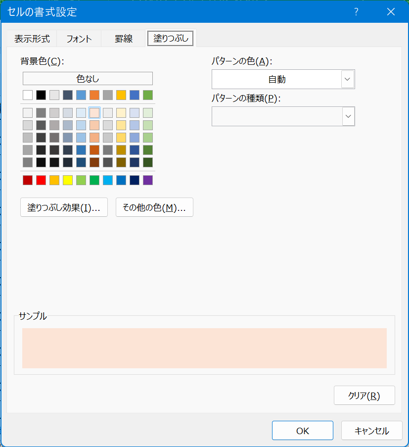 - 塗りつぶし タブを選択する。